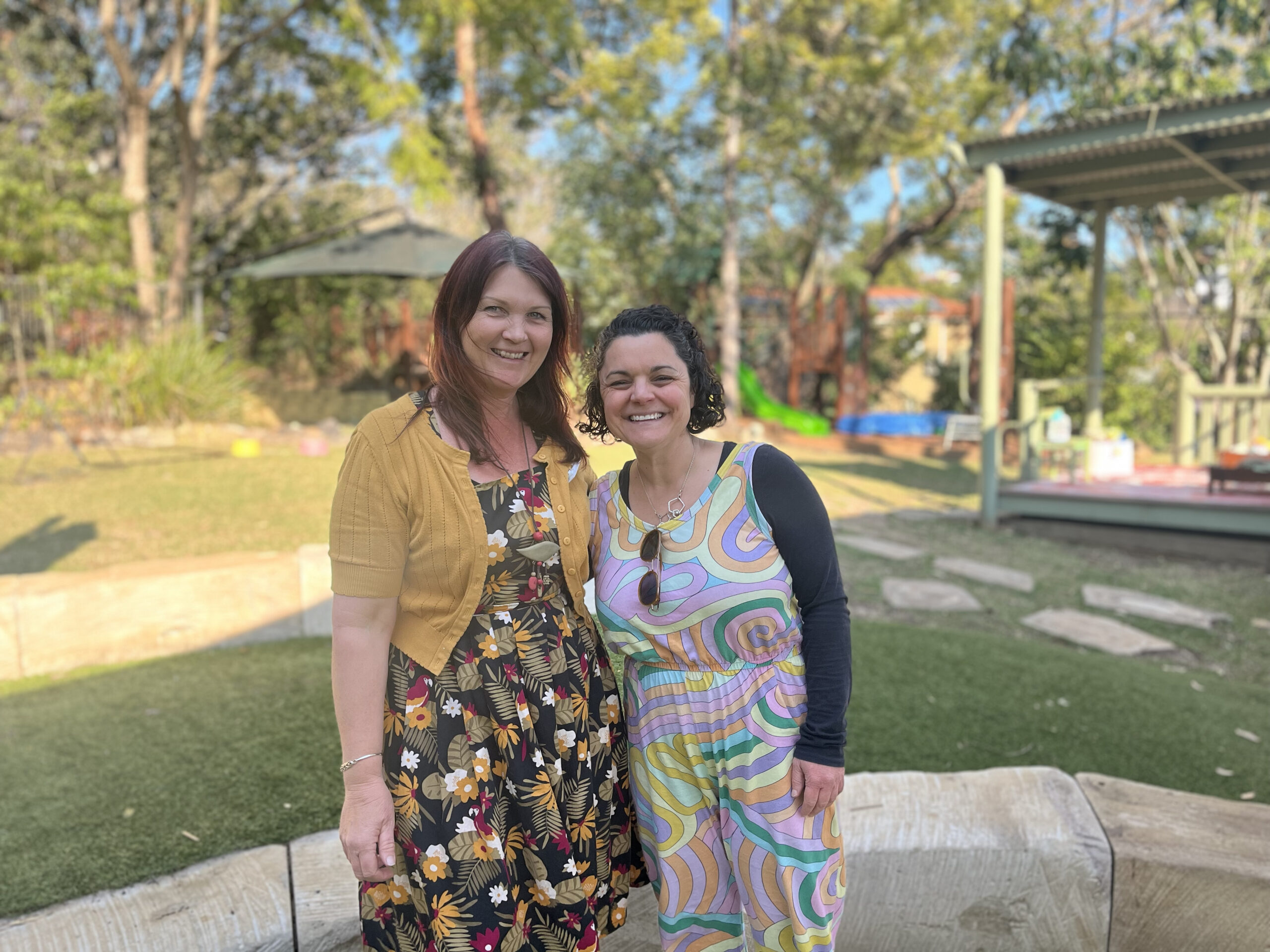 Nicole (left) and parent, Delphie (right), sit down and have a chat about Kenmore West, childrens learning and favourite books!